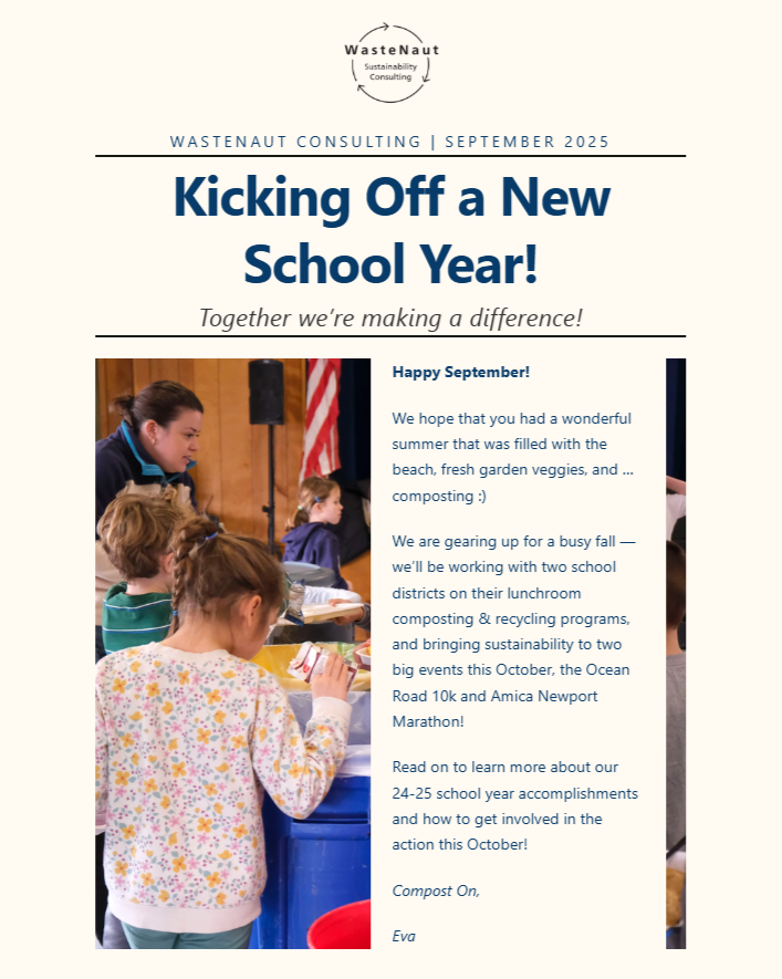 “I'm excited to share Portsmouth's experience working with Eva Touhey and WasteNaut Consulting. We wanted to enhance our composting programs as a district dedicated to sustainability, and Eva's knowledge has been priceless. Eva's commitment to trash reduction has had a significant influence on our composting program. Her individualized approach, attention to detail, and creative problem-solving techniques have enabled us to educate our students and dramatically cut waste.”